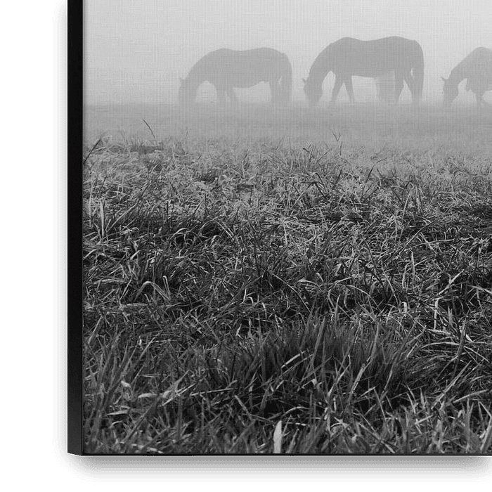 Bestelle das Foto Pferde im Morgennebel von Martina Weidner als Reproduktion auf Leinwand, Alu-Dibond, als Poster, Fototapete oder Acrylglasbild.