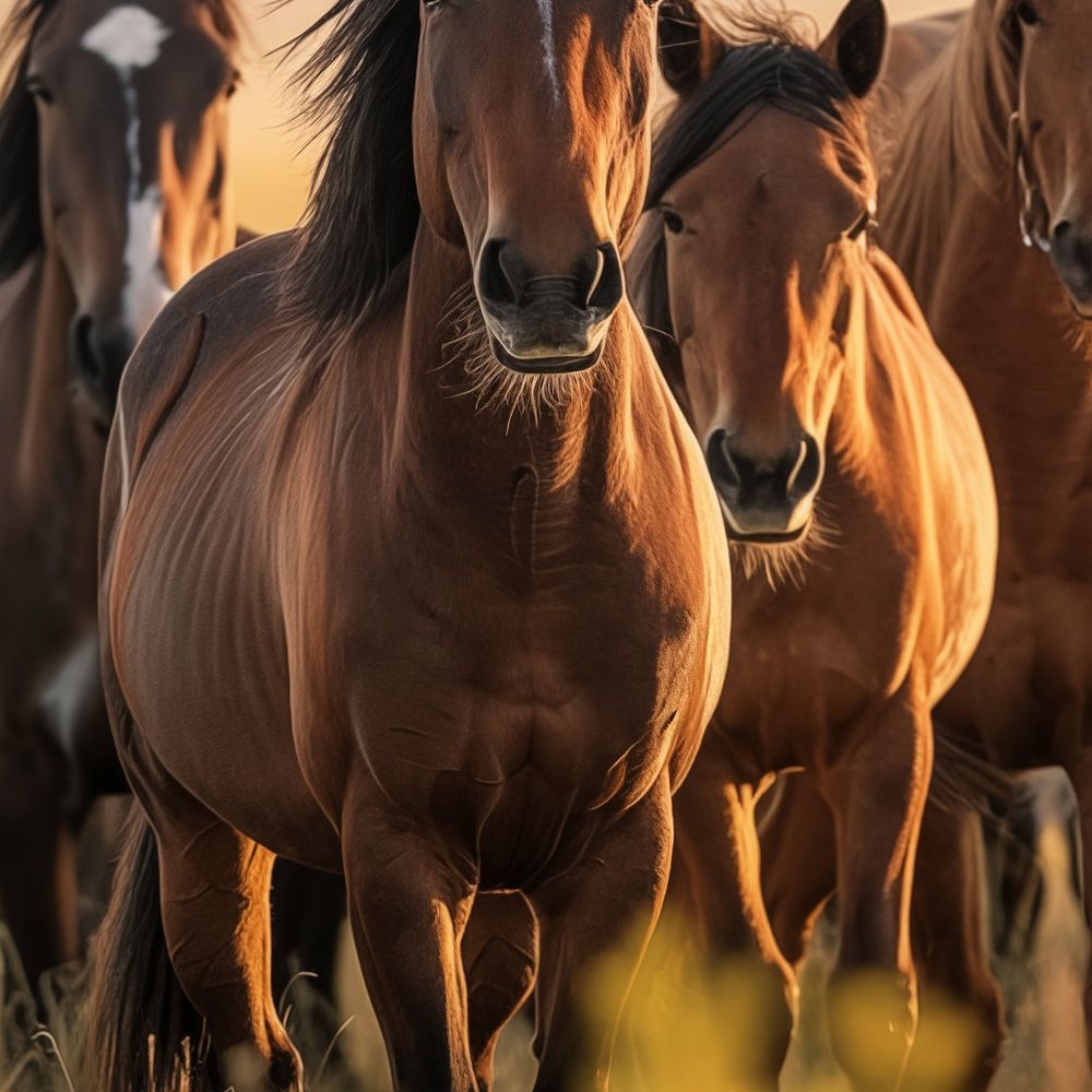 Die beeindruckende Farbpalette des Gemäldes bringt Wärme und Energie in Ihr Interieur. Die subtilen Braun-, Schwarz-, Weiß- und Beigetöne, kombiniert mit kräftigen Akzenten in leuchtendem Grün und Blau, sorgen für ein harmonisches und zugleich energiegeladenes Erscheinungsbild. Das Design fängt die majestätische Bewegung der Pferde ein, so dass das Gemälde nicht nur Ruhe ausstrahlt, sondern auch ein Gefühl von Freiheit und Stärke hervorruft.