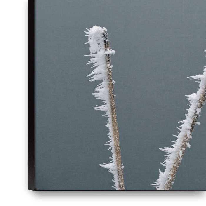 Bestelle dieses abstrakte Wandbild Pflanze mit Eisreife im Winter von Trinet Uzun als Reproduktion auf Leinwand, Alu-Dibond, als Poster, Fototapete oder Acrylglasbild.