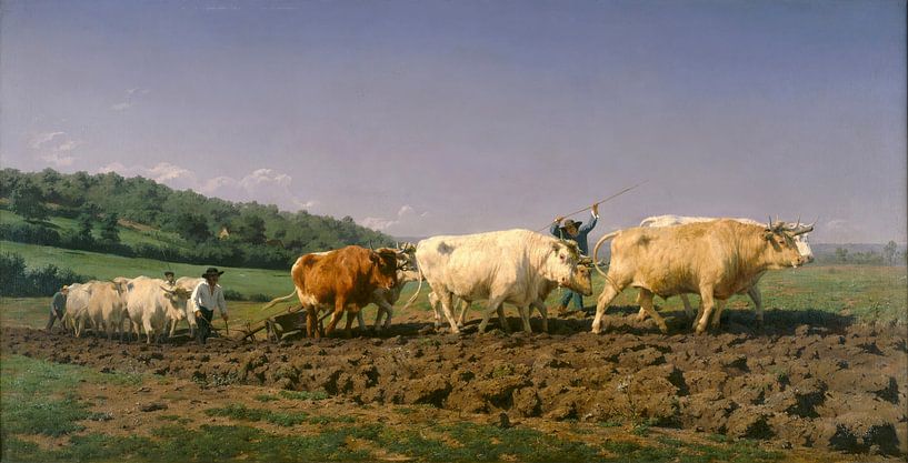 Bestelle diese Malerei Pflügen in Nevers - Rosa Bonheur von Accessible Art als Reproduktion auf Leinwand, Alu-Dibond, als Poster, Fototapete oder Acrylglasbild.