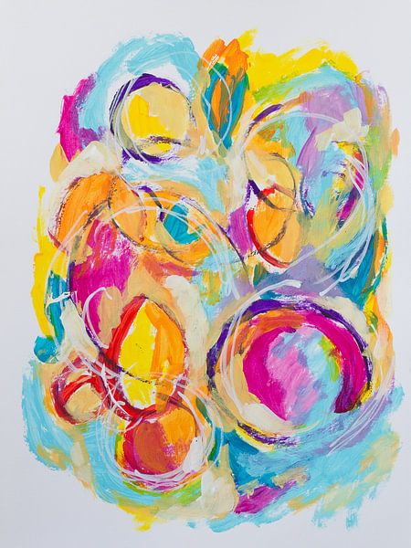 Kennst du das? Dieses Gefühl von Blasen im Bauch, im positiven Sinne? Kribbeln, Schmetterlinge, Adrenalin und rasende Pheromone? You'’re in love! In wen? Was? Das spielt keine Rolle. Genieße es, schwelge darin, lass dich davon überwältigen. Nicht verliebt? Dann kann dir dieses fröhliche, sprudelnde Gemälde trotzdem zu diesem…