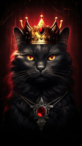 Eine feurige schwarze Katzensilhouette, die sich vor einem dunklen Hintergrund in glühende orangefarbene und rote Flammen auflöst und so intensive Hitze und Zerstörung verkörpert.