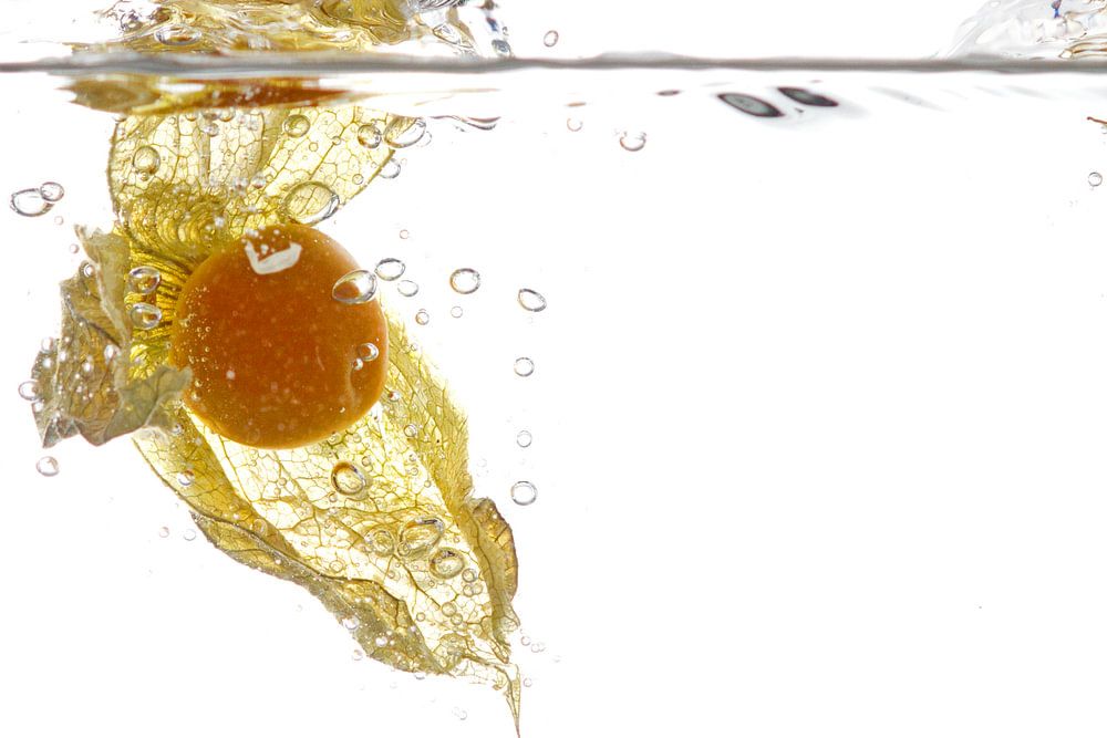 physalis, tropfen splash, fruchtig, gesund, obst, water, spritzer, spritzen, makro, früchte, frucht, vitamine, essen, ernährung, delikatesse, südfrüchte,