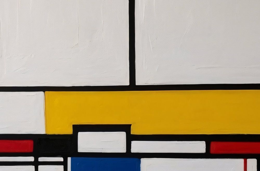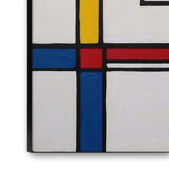 Bestelle dieses abstrakte Wandbild Piet Mondrian Stil abstrakt von Art & Soul Creations als Reproduktion auf Leinwand, Alu-Dibond, als Poster, Fototapete oder Acrylglasbild.