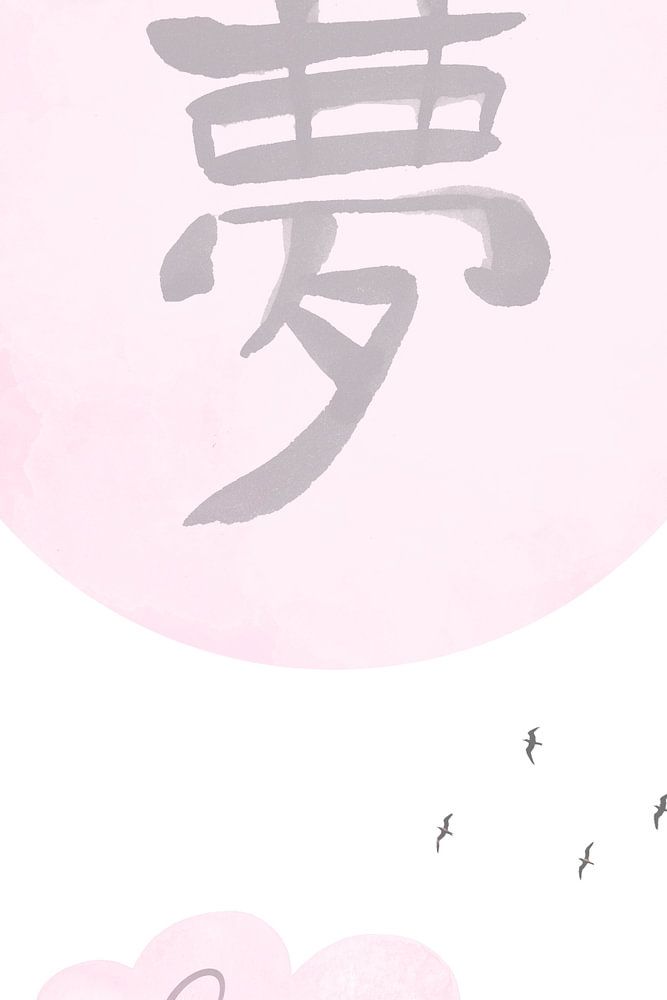 Modernes minimalistisches Design mit einem Kanji Schriftzeichen „träumen“. Der Japandi Stil verbindet traditionelle japanische Eleganz mit skandinavischer Modernität mit dem Ergebnis von Harmonie und Einfachheit.