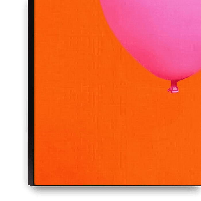 Ein knalliges Motiv, dass sofort gute Laune macht. Ein schwebender pinkfarbener Ballon vor einem orangefarbenen Hintergrund. Nicht nur für Geburtstagskinder...
