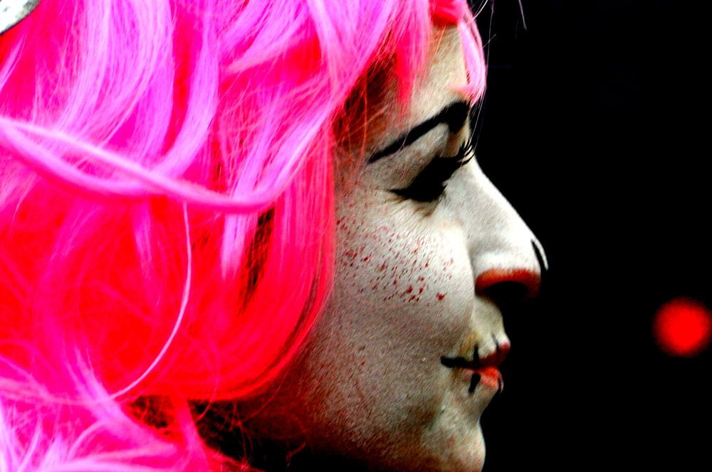 Deze jongedame was actief tijdens het carnavalsfeest in Schaesberg (Zuid-Limburg). Door de kleuren een oppepper te geven krijgt dit beeld iets surrealistisch. Het contrast tussen het donkere gedeelte en het felle rose zorgt er voor dat dit werk als het ware van de muur spat.