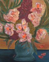 Bestelle dieses Blumen-Wandbild Pionierin mit Neonfarben von Atelier LHB - Mirjam van der Vegt als Reproduktion auf Leinwand, Alu-Dibond, als Poster, Fototapete oder Acrylglasbild.