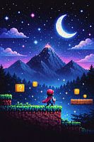 Bestelle das digitale Kunst Bild Pixel-Abenteuer unter dem Mond von Dodik Hariyono als Reproduktion auf Leinwand, Alu-Dibond, als Poster, Fototapete oder Acrylglasbild.