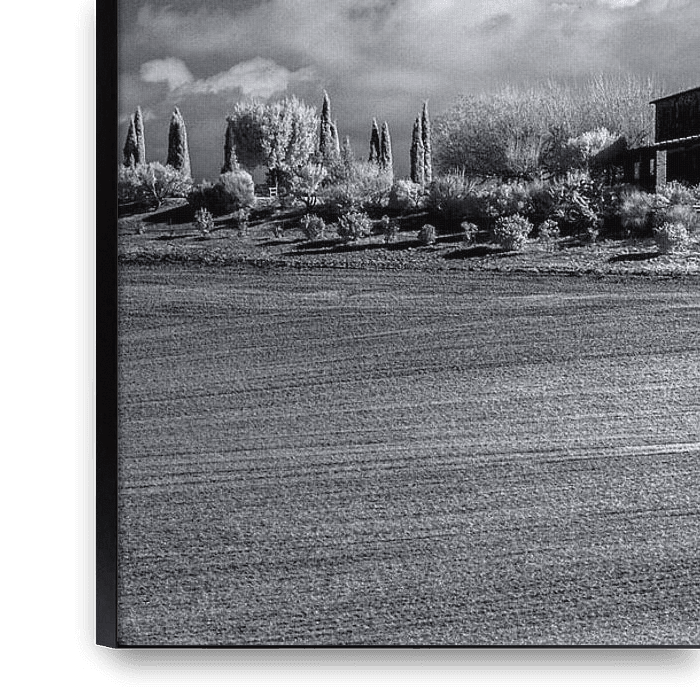 Bestelle das Foto Poggio Covili - Toskana - 4 - Infrarot schwarz/weiß von Teun Ruijters als Reproduktion auf Leinwand, Alu-Dibond, als Poster, Fototapete oder Acrylglasbild.