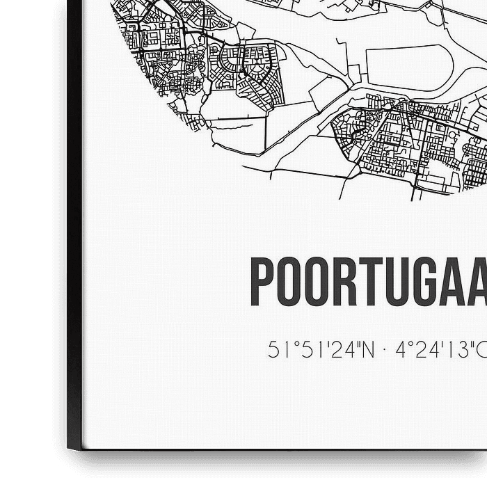 Bestelle dieses abstrakte Wandbild Poortugaal (Süd-Holland) | Karte | Schwarz und Weiß von Ortsdrucke als Reproduktion auf Leinwand, Alu-Dibond, als Poster, Fototapete oder Acrylglasbild.