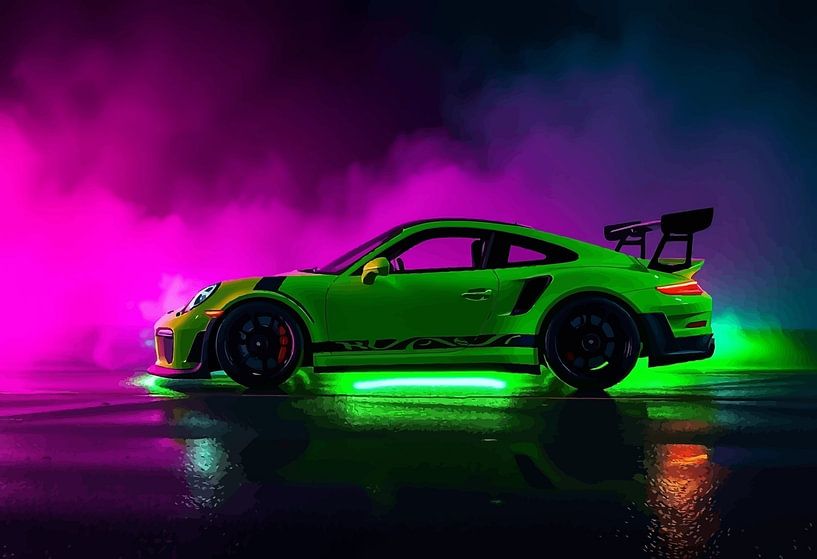 Porsche 911 GT3 RS Lime Green Neon Smoky Showroom Kunst von MIROKKU