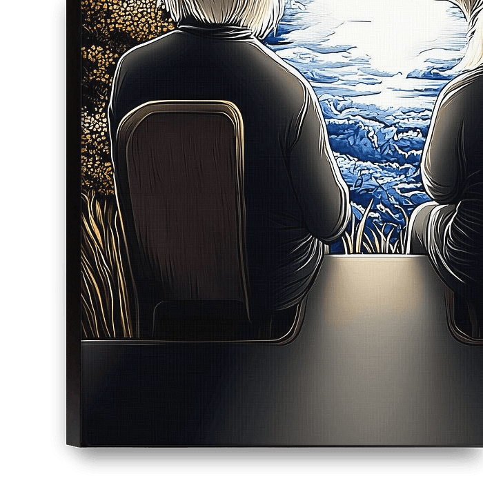 Ihre gewählte Kunst auf Leinwand, gespannt in einem Aluminiumrahmen. Schnell und einfach austauschbar für eine frische Ausstrahlung und ganz nach Ihren Wünschen.