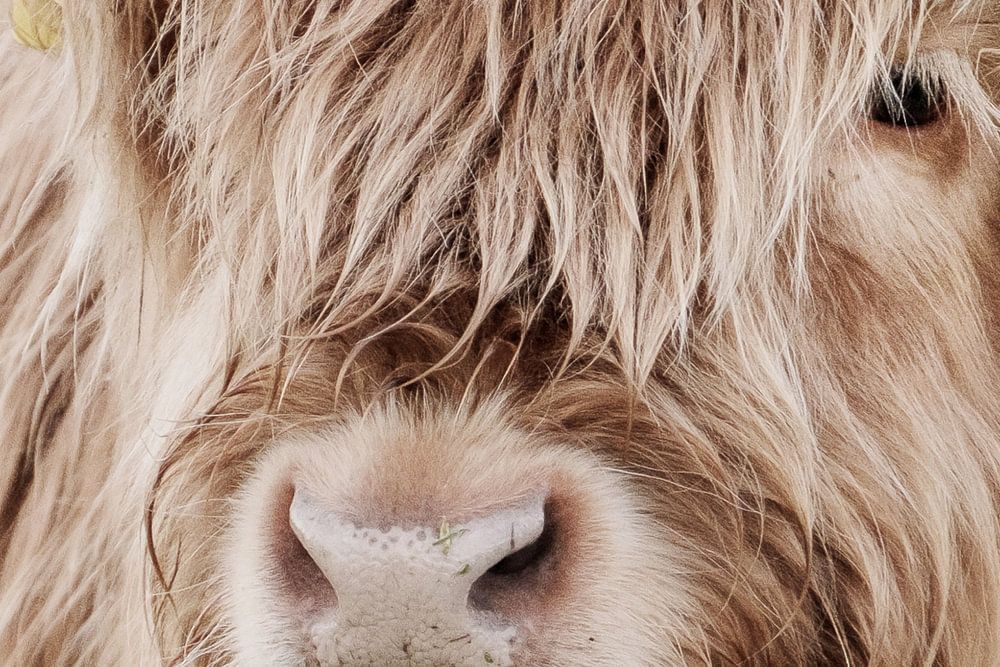 Ein Porträt eines jungen, zähen schottischen Highlanders. Dieses halbjährige, neugierige Kalb konnte ich in einem der schönen Naturschutzgebiete an der Küste der Niederlande fotografieren: Lentevreugd, zwischen Wassenaar und Katwijk.