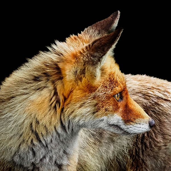 Ein Nahaufnahme-Porträt eines Fuchses. Der Fuchs war so sehr in seine Jagd vertieft, dass er mich nicht beachtete und ich in der Lage war, in einem Augenblick ein Nahaufnahmefoto zu machen. Was für eine schöne rostbraune Farbe dieses Fell hat.