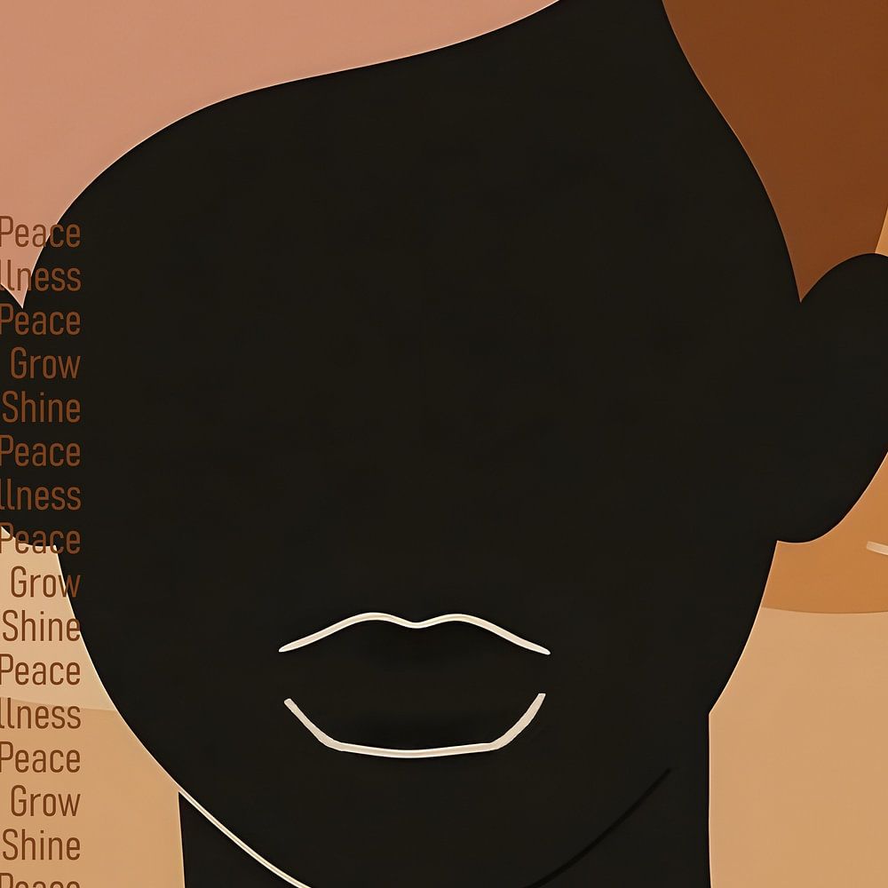 Dieses Werk ist ein minimalistisches, abstraktes Porträt eines menschlichen Kopfes und Halses, ausgeführt in einem modernen, klaren Illustrationsstil. Das Gesicht ist eine dunkle Silhouette ohne Augen und Nase, wodurch der Fokus ganz auf Einfachheit und Ausdruck liegt. Subtile, dünne weiße Linien zeichnen die Lippen nach und sorgen für…