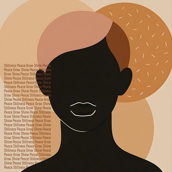 Bestelle dieses abstrakte Wandbild Porträt einer Frau, Worte: „Calm“ von FoXo Art als Kunstdruck auf Leinwand, Alu-Dibond, als Poster, Fototapete oder Acrylglasbild.