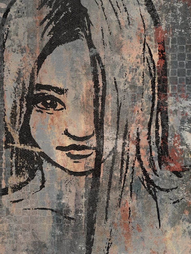 Eine digital kolorierte Kohlezeichnung einer jungen Dame. Diese Zeichnung ist mit Dunkelgrau und Rostbraun koloriert. Die Dame hat einen geheimnisvollen Blick in ihren Augen.