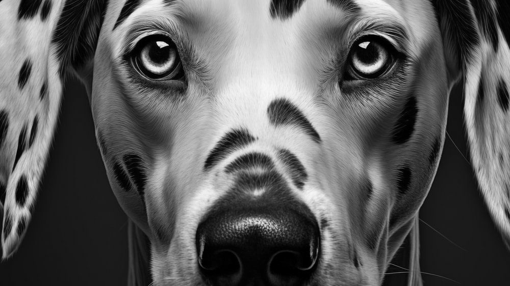 Porträt eines Dalmatiner , Schwarz-Weiß-Foto mit schwarzem Hintergrund