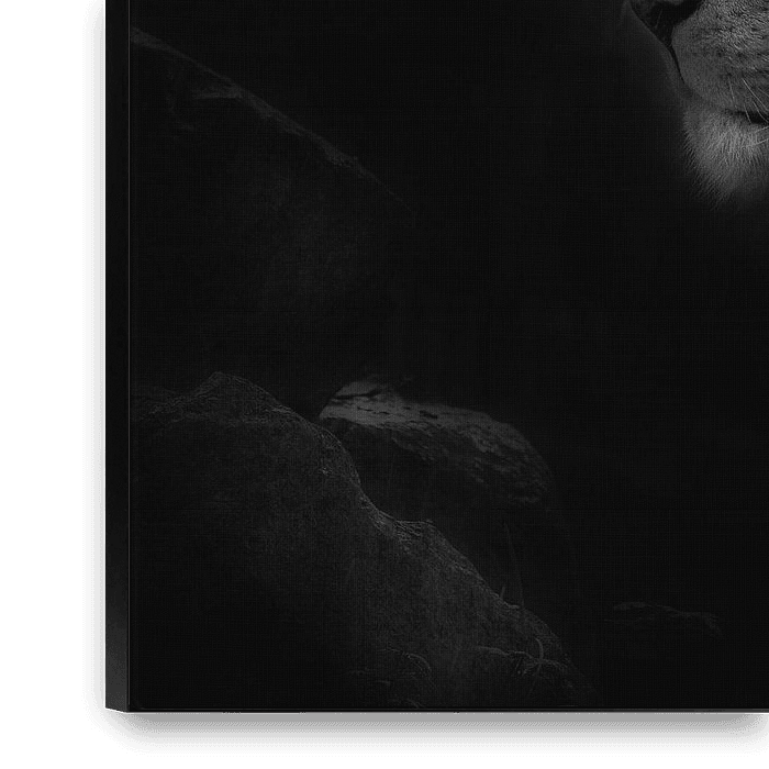 Seitenansicht eines Löwenkopfes in Schwarzweiss