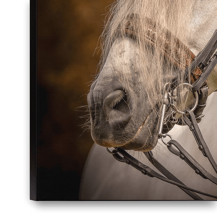 Dieses Porträt eines Schimmelpferdes ist eine Hommage an die zeitlose Eleganz dieser schönen Pferderasse. Das graue Fell mit seinen weichen, silbrigen Tönen schimmert wie Mondlicht. Das Auge strahlt Intelligenz und Freundlichkeit aus, und die sorgfältig eingefangenen Details fangen die Stärke und Schönheit dieses majestätischen Tieres…