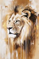Dieses Gemälde zeigt einen majestätischen Löwen mit einem kraftvollen, ruhigen Blick. Die Verwendung von Gold- und Brauntönen verleiht dem Kunstwerk eine warme und luxuriöse Ausstrahlung. Die Details in der Mähne und der durchdringende Blick des Löwen machen das Porträt realistisch, während die weichen Linien und fließenden…