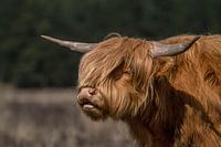 Naturschutzgebiet Veluwezoom an der Veluwe in den Niederlanden. Ein hartes und eindringliches Porträt der robusten schottischen Hochlandbewohner, die das Heideland des Veluwezoom abgrasen.