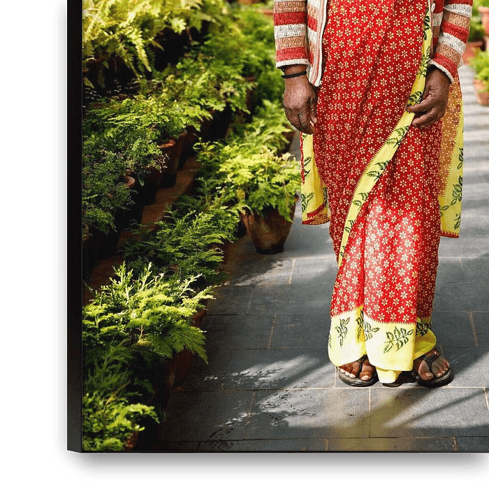 Bestelle das Foto Porträt im Gewächshaus Südindien von Marvin de Kievit als Reproduktion auf Leinwand, Alu-Dibond, als Poster, Fototapete oder Acrylglasbild.