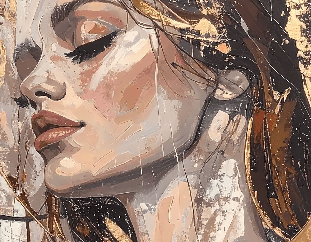 Frau mit geschlossenen Augen, Porträt in Goldtönen