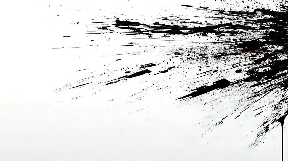 Ein künstlerisches Porträt einer Frau mit leuchtend orangefarbenen Lippen und einem dramatischen Spritzer schwarzer Tinte, der sich über ihr Gesicht zieht. Der Kontrast zur weißen Hintergrundfläche verstärkt die visuelle Wirkung und sorgt für eine ausdrucksstarke und moderne Ästhetik.