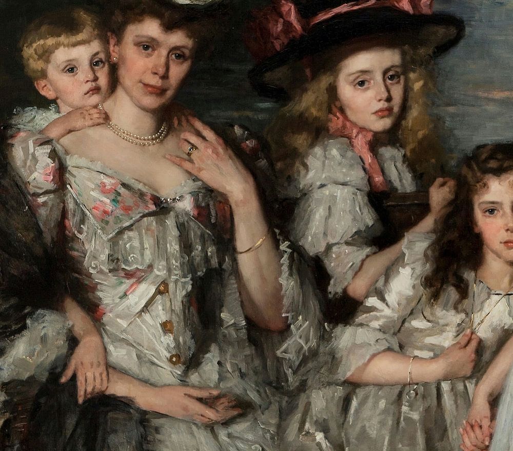 1906 porträtierte Thérèse Schwartze Aleida van Ogtrop-Hanlo zusammen mit fünf ihrer Kinder. Schwartze war um 1900 eine der führenden Gesellschaftsmalerinnen in den Niederlanden. Ihre Klientel stammte aus dem Adel und der bürgerlichen Elite in Amsterdam und Den Haag. Auch Mitglieder der königlichen Familie saßen bei ihr.