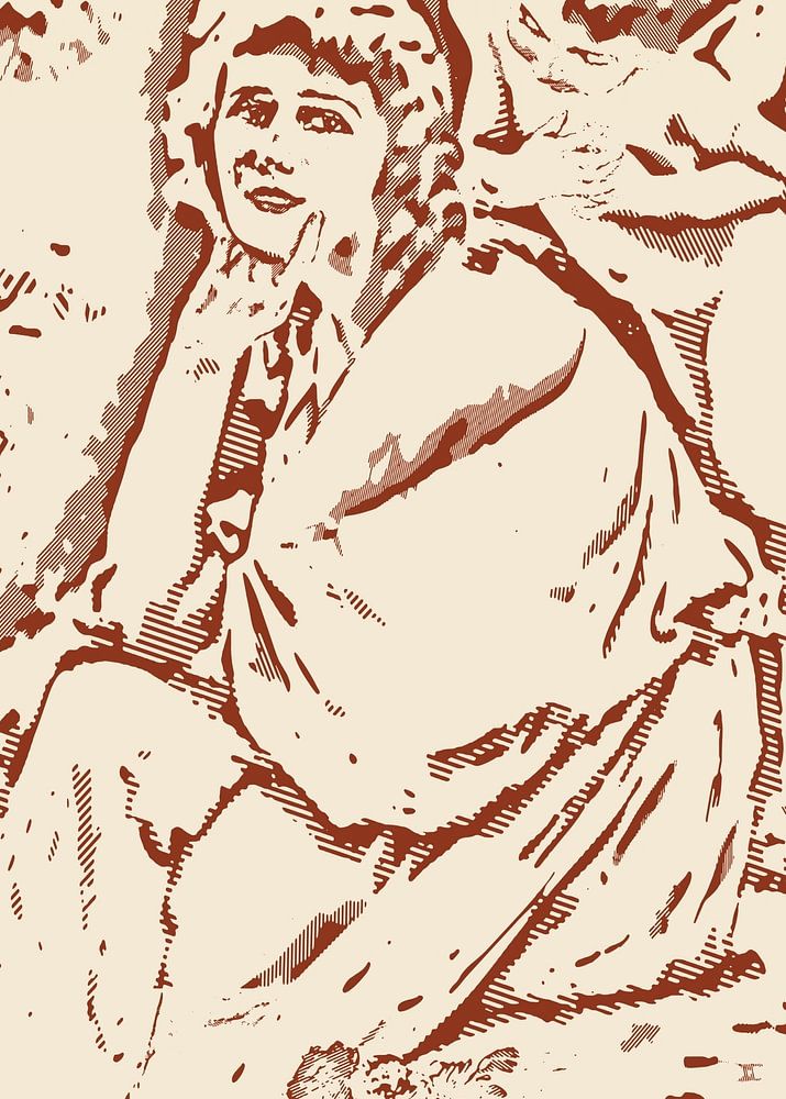 Minimalistische Linienkunst nach einem klassischen Gemälde: Porträt von Mary Pickford - Guillaume Seignac