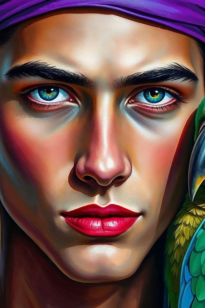 Schönheit und Diversität > Portrait > Junger Mann mit Papagei