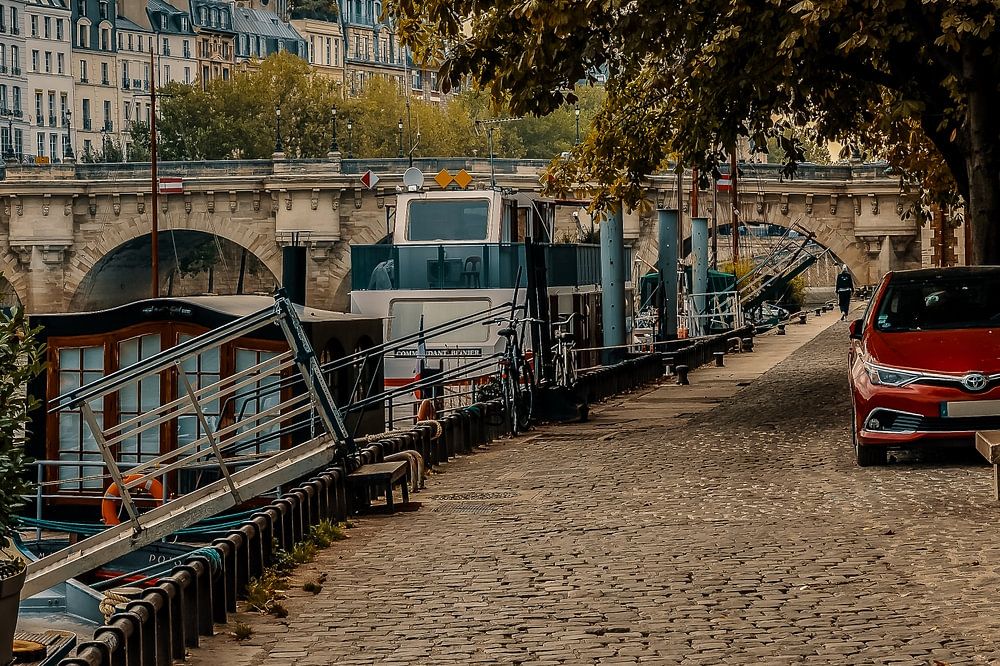 Foto von der Promenade Marceline Loridan-Ivens in Paris, entlang der Seine, mit der Île de la Cité im Hintergrund.