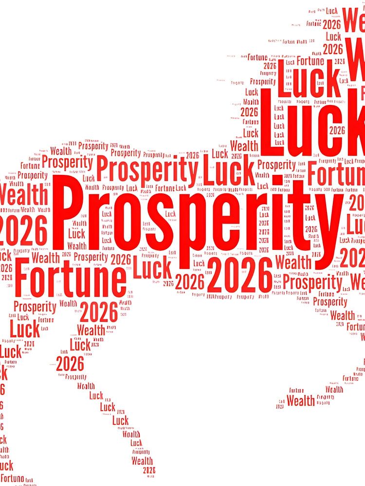 Prosperity Horse Wortwolke für das neue Jahr 2026 von Clay Artista