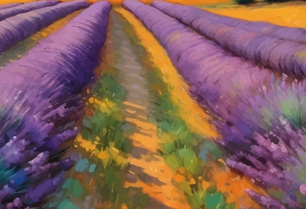 Endlose Lavendelreihen erstrecken sich unter einem leuchtenden Sommerhimmel auf ein entferntes Bauernhaus zu. Die impressionistische Palette des Künstlers ist voll von Violett, Gold und sanftem Blau und trägt den Duft der französischen Landschaft in sich. Dieses Gemälde strahlt Wärme und Ruhe aus und bringt die Romantik der Provence in Ihr Zuhause.