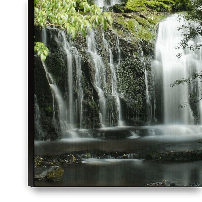 Bestelle dieses moderne Wandbild Purakaunui Falls - New Zealand von RB-Photography als Reproduktion auf Leinwand, Alu-Dibond, als Poster, Fototapete oder Acrylglasbild.