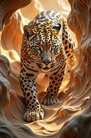 In den Tiefen einer uralten Höhle erhebt sich ein Leopard, dessen Blick scharf wie eine Klinge durch die Dunkelheit schneidet. Zwischen Sand, Stein und Schatten wird er zum lautlosen Jäger, bereit, mit unaufhaltsamer Präzision zuzuschlagen. Sein Fell schimmert wie flüssiges Gold im Schein des Lichts, das durch die bizarren Formen der…