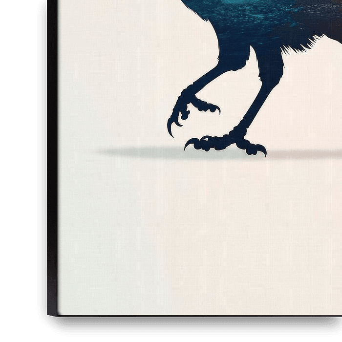 Ein majestätischer Schatten eines Raben, dessen Körper ins Flüstern der Bäume und den warmen Sonnenuntergang eingetaucht ist. Diese harmonische Verbindung von Natur und Mystik verleiht jedem Raum einen Hauch von Geheimnis und Ruhe. Ideal für das Wohnzimmer, um Gespräche zu inspirieren und eine entspannende Atmosphäre zu schaffen.