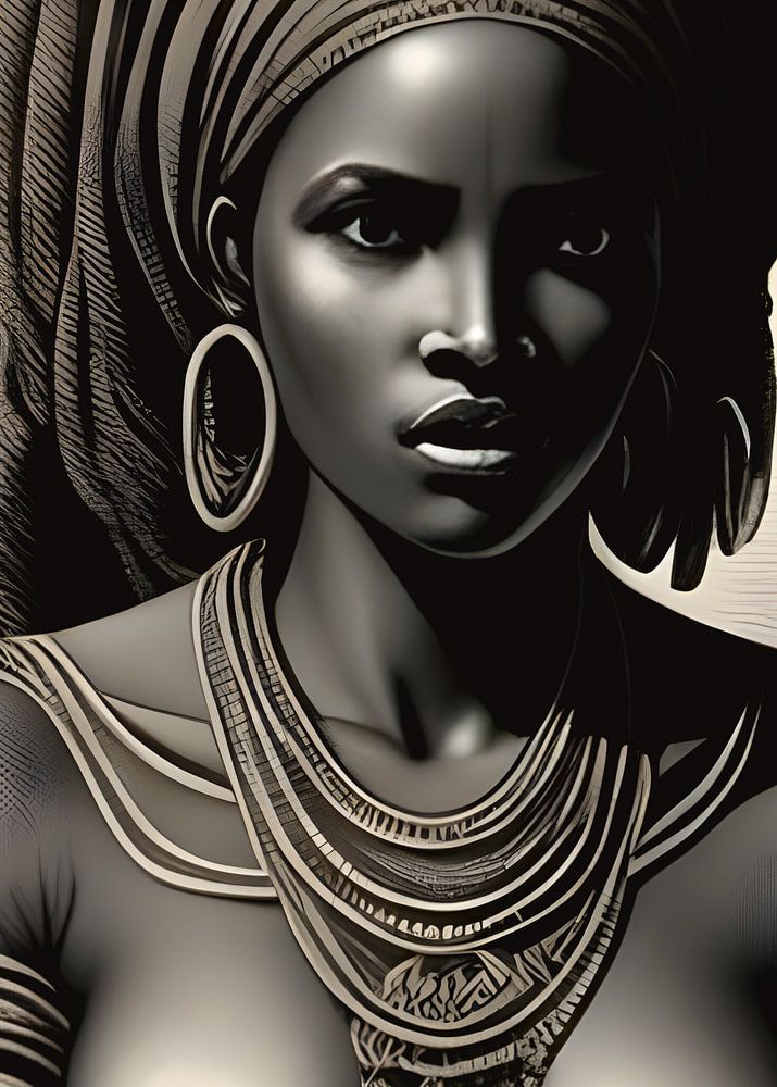 Die digital erstellten Bilder afrikanischer Frauen haben den Charme von Radierungen und bringen eine besondere Dynamik in Ihre Innenräume. Diese Kunstwerke mit ihren feinen Linien und ausgeprägten Texturen verleihen jedem Raum einen Hauch von Raffinesse.