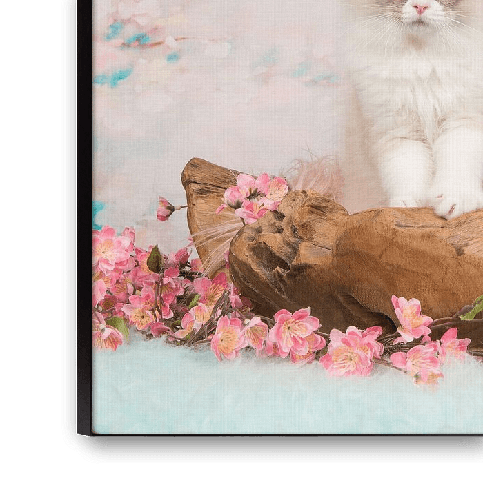 Ragdoll-Kätzchen gegen einen romantischen Blumenhintergrund