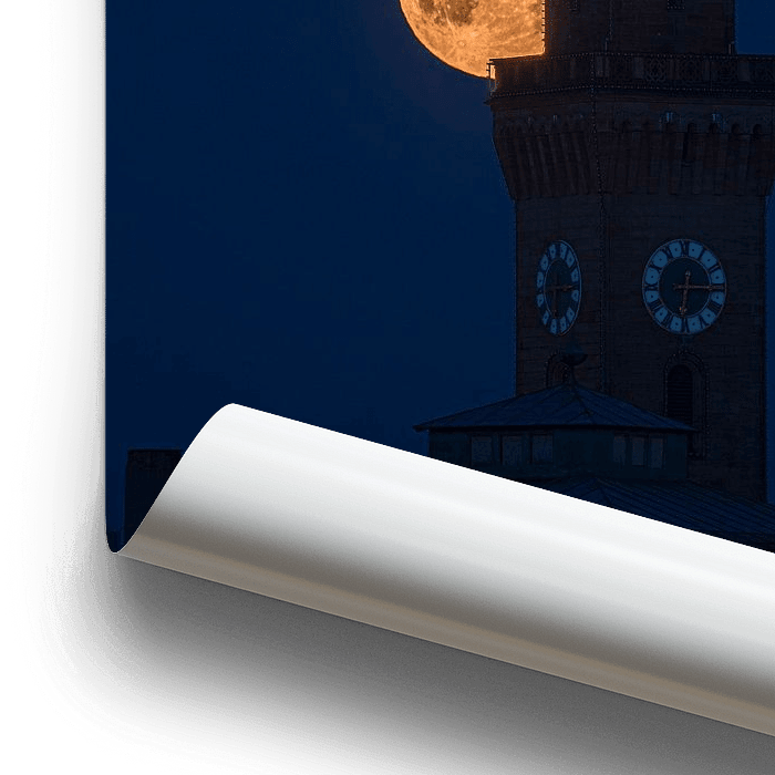 Bestelle das Foto Rathaus Fürth mit Vollmond von Faszination Fürth als Reproduktion auf Leinwand, Alu-Dibond, als Poster, Fototapete oder Acrylglasbild.
