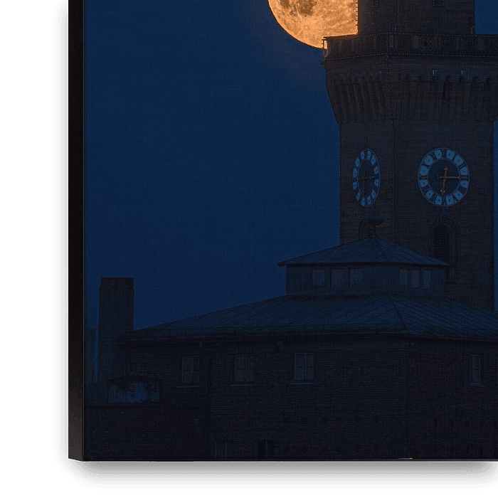 Bestelle das Foto Rathaus Fürth mit Vollmond von Faszination Fürth als Reproduktion auf Leinwand, Alu-Dibond, als Poster, Fototapete oder Acrylglasbild.