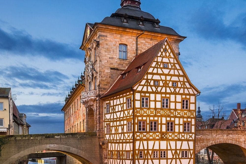 Altes Rathaus von Bamberg bei Nacht, Deutschland