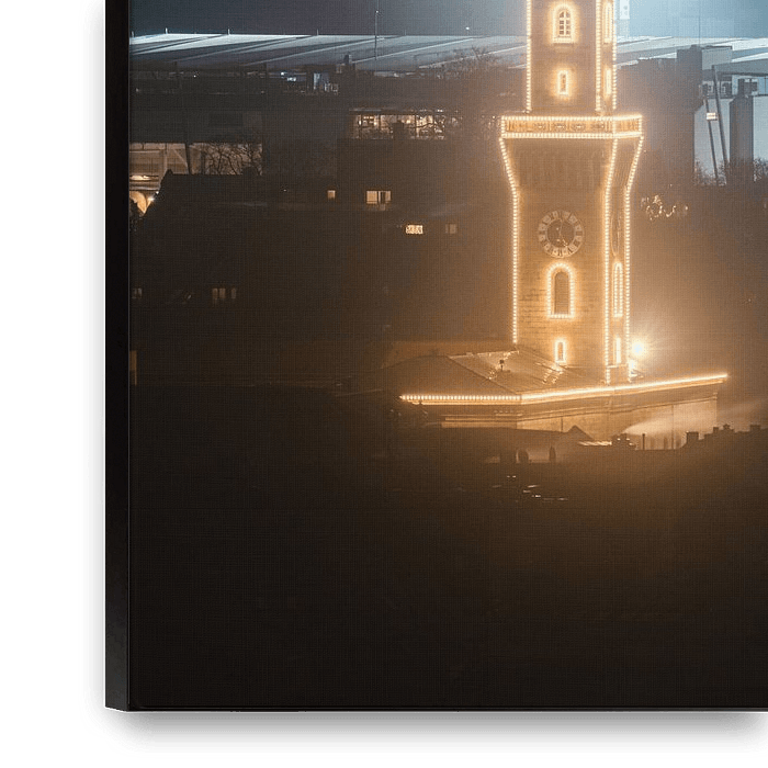 Bestelle das digitale Kunst Bild Rathaus und Stadion von Faszination Fürth als Reproduktion auf Leinwand, Alu-Dibond, als Poster, Fototapete oder Acrylglasbild.