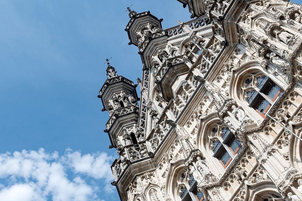Leuven Belgien Das ikonische Rathaus (Stadhuis) wurde zwischen 1439 und 1469 im brabantinischen spätgotischen Stil erbaut und ist berühmt für seine kunstvolle Architektur.