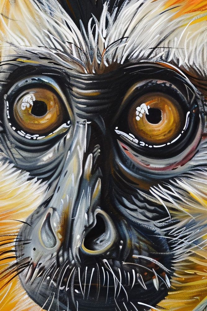 Dieses eindrucksvolle Kunstwerk zeigt ein wunderschön detailliertes Porträt eines Affen vor einem leuchtend gelben Hintergrund. Das ausdrucksstarke Gesicht des Affen wurde meisterhaft mit realistischen Details und intensiven Farben eingefangen, was eine starke visuelle Aussage darstellt. Dieses Gemälde verleiht jedem Raum ein dynamisches und modernes Element, perfekt für Kunstliebhaber, die naturnahe und farbenfrohe Werke lieben. Hängen Sie dieses Kunstwerk in Ihrem Schlafzimmer oder Büro auf, um ein Gefühl von Lebendigkeit und Energie zu vermitteln. Es ist eine einzigartige Ergänzung für jede Kunstsammlung und wird mit Sicherheit für Gesprächsstoff unter den Besuchern sorgen.