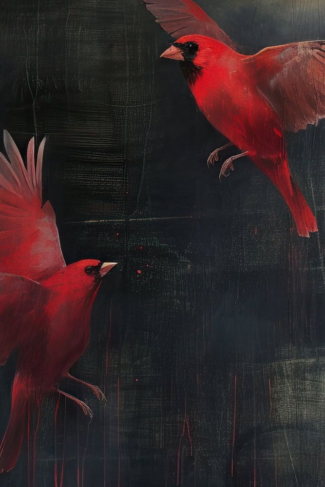 Red Birds Moon | Crimson Moon Dance - Malerei rote Vögel Nacht Mond