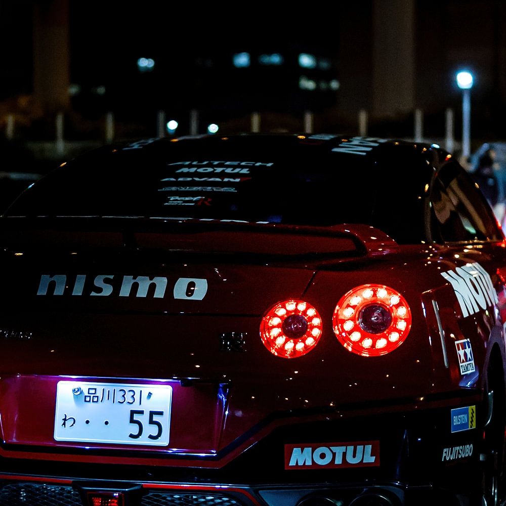 Ein roter Nissan GT-R, R35, Nismo während eines Liberty Walk Autotreffens in Yokohama in Tokio in Japan.