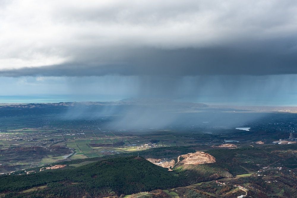 Dieses Foto wurde im Dezember bei schlechtem Regenwetter aufgenommen. Dadurch entstehen spektakuläre Wolkenformationen, durch die die Sonne wie eine Sonnenharfe scheint.